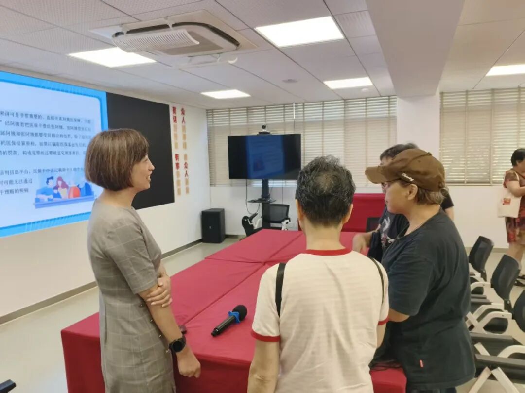 讲座内容涵盖职工医保与居民医保的区别、医保待遇与保障范围、医疗费用计算方法、沪惠保参保与理赔、便捷就医方式、个人账户家庭共济政策以及医保基金安全等多个方面。许主任结合真实案例,用通俗易懂的语言,帮助居民理解医保政策中的专业术语和报销规则,增强大家对自身医保权益的认识。