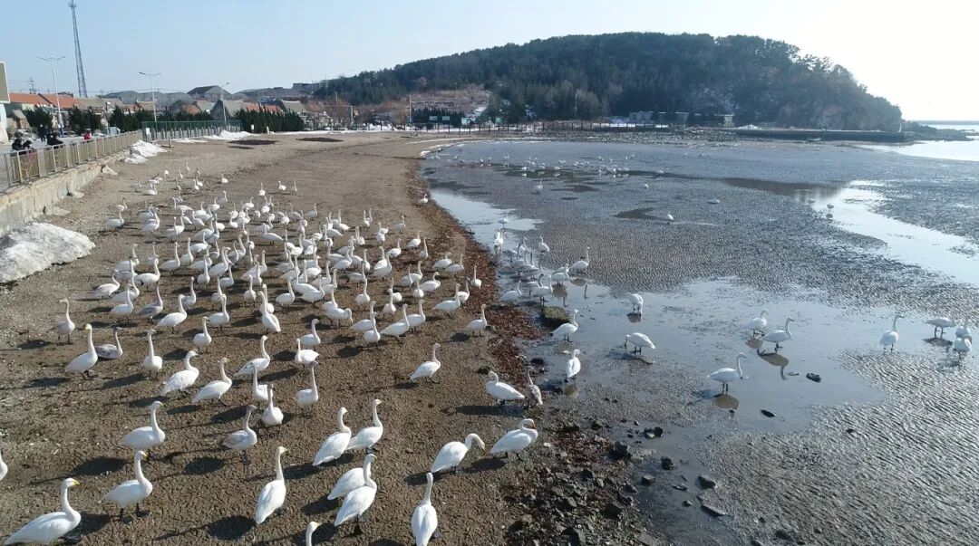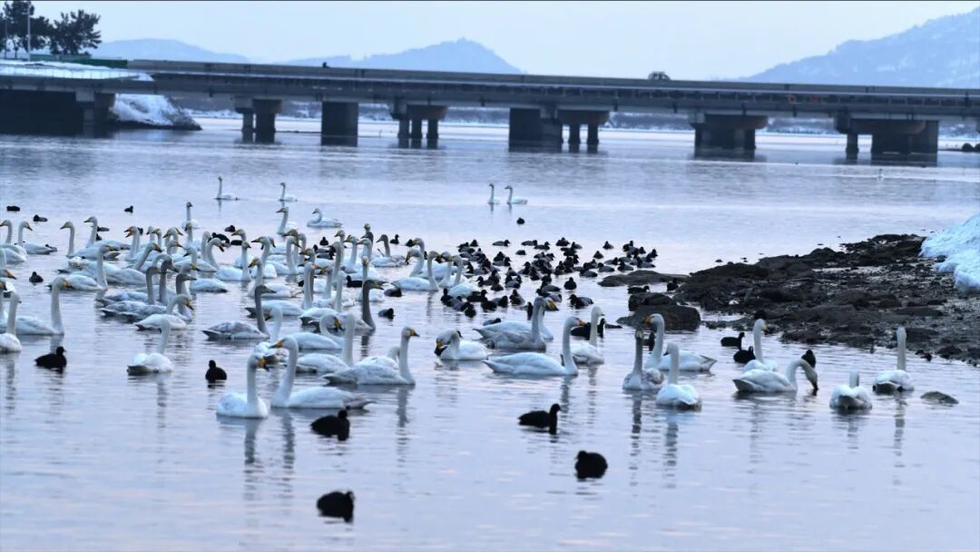 作为“第十一届”品牌活动之一,上海市海洋管理事务中心和上海自然博物馆联合推出第十一届特别策划——海洋生物多样性科普短视频“滨海湿地优雅天使——大天鹅”。 大天鹅Cygnus cygnus,雁形目鸭科鸟类,大型游禽,国家二级重点保护野生动物。全身羽毛白色,娟娟羽衣,似山阴仙子。 喙端黑色,喙基黄斑至鼻孔下方,颈与体略等长,趾间具黑色蹼。幼鸟偏灰色,喙基粉红。 大天鹅是冬候鸟,具迁徙习性,繁殖于蒙古、俄罗斯等地区,越冬于我国东部沿海地区,喜水生植物丰富的开阔水域,如湖泊、水库、河流漫滩、沿海泻湖、多草海滩和农田等生境。青海湖、平陆黄河湿地和荣成天鹅湖等区域是大天鹅重要的越冬栖息地。 大天鹅常结群活动,曲颈低语,抱影眠波千顷白。性机警,叫声高亢,一曲任疏狂。起飞前水上助跑,凌波漫步。铅华洗尽,高飞去。 以水生植物为食,偶食水生动物,常在晨昏和正午觅食。采食水生植物的茎叶和根茎,亦取食陆生草本植物和农田谷物蔬菜。取食行为受环境温度影响,而安全性和食物可获得性决定栖息地选择。 大天鹅每年五至六月繁殖,雌鸟单独孵卵,幼鸟早成,成鸟具护幼行为。适宜栖息地的面积减少和质量下降,以及人为干扰,影响大天鹅的种群数量和分布格局。大天鹅越冬适宜生境,存在保护空缺,部分重点利用区域不在保护范围。 通过地形整理、食物链构建等生态修复技术,可为大天鹅提供适宜的越冬栖息生境。过度人为干预,影响大天鹅的种群分布格局、觅食行为和活动规律,应减少人工投食。同时,雁鸭类是禽流感病毒易感类群,可携带病毒长距离传播,需加强监测防控。 守护滨海湿地,共同绘制人与自然和谐共生的美好画卷! 海洋中心供稿