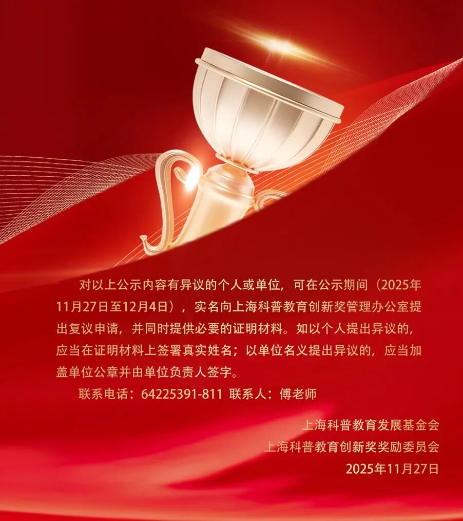 【重磅】2025年上海科普教育创新奖获奖前公示