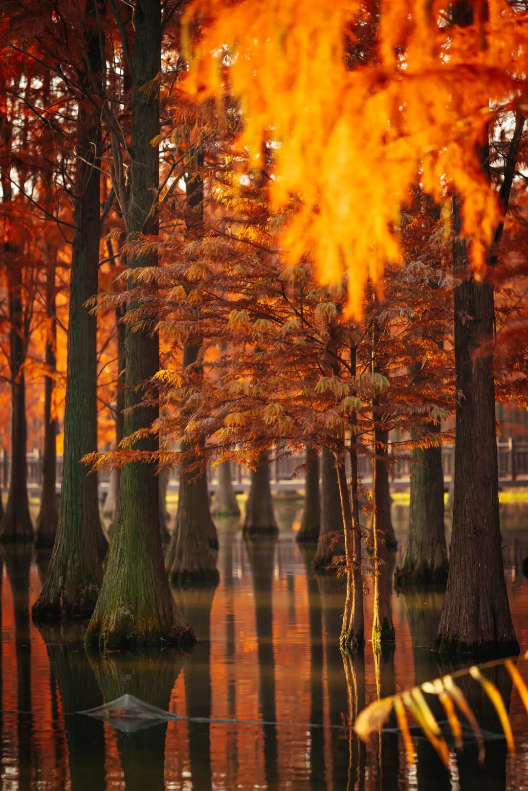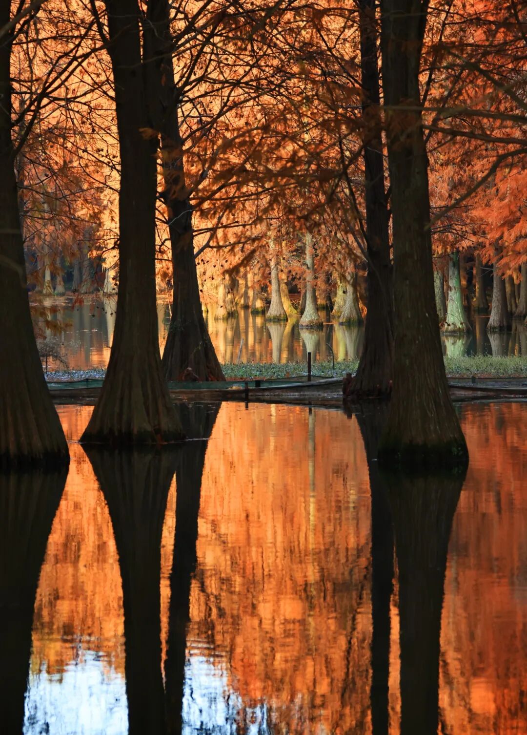 如果将晚秋视作一场铺天盖地的金黄盛宴,那青西郊野公园此时便进入了一个更为宁静而鲜艳的篇章。水中的池杉倒影随波纹晃成流动的 “焦糖缎带”,鹭鸟掠过红杉林梢,随手一拍都是壁纸级的油画感,这片限定秘境,正等你赴约。跟着市文化旅游局的脚步,一起来看↓