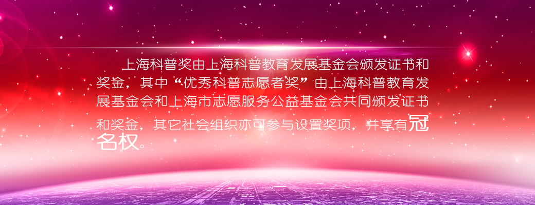 遵守《上海市志愿服务条例》,具有典型事迹和突出贡献,并能直接或间接为上海科普事业做出贡献的个人或团队,每届授予数不超过21项,提名奖若干。