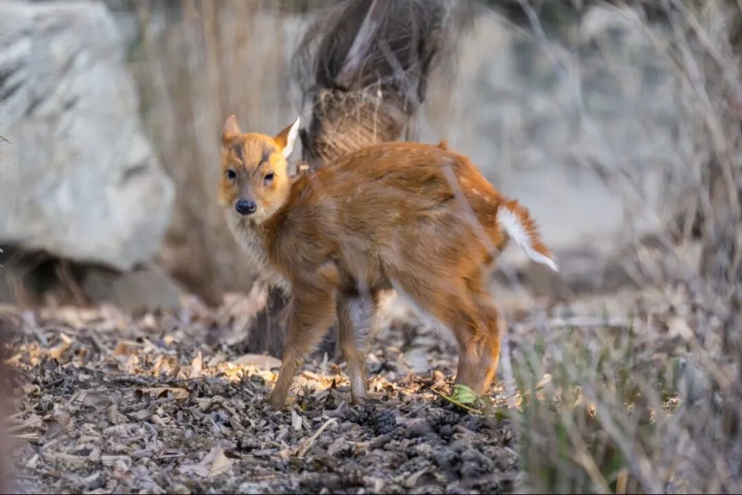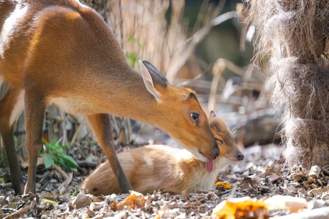 今年春天,赤麂作为新成员亮相上海动物园。在野外,它们生活在热带及亚热带丘陵、山地树林、草灌丛中。生性胆小,动作灵敏及独居生活使它们在丛林中成为若隐若现,神秘莫测的“森林隐士”。 为了打造一块适合赤麂的展区,就要了解其原生环境:高大的乔木,茂密的灌木,松软的覆盖着落叶及碎木的腐殖土。由于本次展区面积有限,饲养员决定在展区丰容上多下功夫,通过立体化、多样化的设计,使展区布局更加丰富而贴近自然。 第一就是种入足够的植物,来模拟树林,既能给赤麂足够的安全感,也能形成视觉屏障,掉落的叶子、果实也能变成赤麂的小零食。在选择植物上,首先要避免有毒的,其次尽量选赤麂不爱吃的,这点很难满足,因为赤麂作为食草动物,几乎不挑食,而在野外吃下多种多样的植物也是它们吸收多种营养的主要途径。所以在展区内种植低矮灌木,就采取用铁网或竹篱笆围起保护的方式,这样虽然也能吃到一些细枝末节,但植物整体是安全的。在茂密的植物中,放入木屋、石屋等躲避处,让胆小的赤麂更有安全感,如有刚出生的小幼崽,也能提供安全的躲避处。 其次是垫材,赤麂展区有一部分砖地,看上去很不天然,所以在砖地的一部分,铺上10厘米左右厚的由树皮、落叶组成的仿野垫材,用树干段围起来,成为一片柔软的“大床”。这些材料都是动物园内收集起来的,属于循环再利用。而在泥土地上,也撒上薄薄一层各种落叶,模拟野外树林地表。 充足的隐蔽场所让赤麂无需为争夺藏身之处而互相追逐,茂密的植被为它们提供了充分的安全感与视觉屏障。更惊喜的是赤麂幼崽的身影也悄悄出现在了这片葱茏之中。 现在,树皮垫材区成了赤麂最喜爱的区域,赤麂们会在垫材上整理出一块凹陷的舒适区域然后伏在上面休息,还会长时间翻拱垫材,试图在底下找到些食物,饲养员发现这一点后,开始在垫材里撒一些颗粒料,来作为食物丰容。 这片不大的“赤麂庭院”虽不如热门展区引人注目,却自藏幽趣,若不经意间邂逅此地,“森林隐士”反倒会获得一份意外的惊喜哦! 文:刘昌 图:倪昀 朱玉婷
