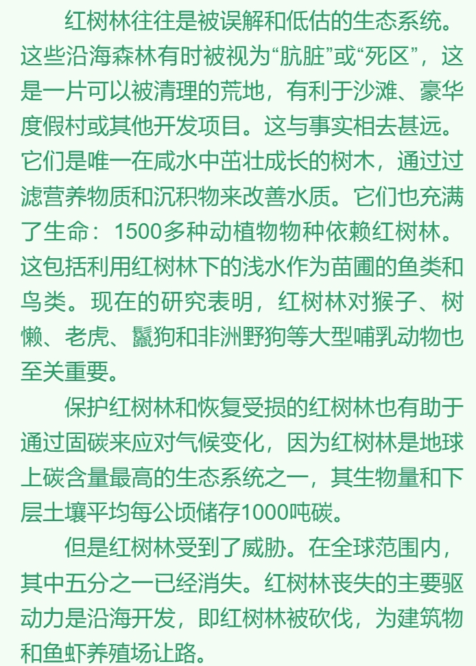 点击蓝字 关注我们 (图源:Mangrove Photo Awards/Muhammad Mostafigur Rahman) 01红树林是气候英雄 (红树林摄影奖获奖照片。图源:Mangrove Photography Awards/Melodi Roberts) 02红树林可抵御极端天气和灾害 (红树林摄影奖获奖照片。图源:The Mangrove Photography Awards/Shyjith Kannur) 03红树林是濒危动物的天堂 (红树林摄影奖获奖照片。图源:The Mangrove Photography Awards/Victor Hugo Luja Molina) 04红树林促进粮食安全 (红树林摄影奖获奖照片。图源:The Mangrove Photography Awards/Rajesh Dhar) 05红树林可以自然反弹 ▲2021-2030年联合国生态系统恢复十年 ▲2021-2030年联合国海洋科学十年 ▲红树林摄影奖 以上信息均整理自互联网,仅用于公益传播,如有侵权,请联系我们!