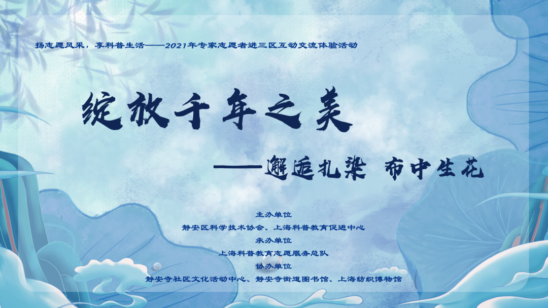 点击蓝字 · 关注我们 为加快优秀科普内容的下沉力度,将传统纺织技艺与文化推广到社区街道,4月7日,静安区科协携手促进中心,在静安寺社区文化活动中心开展了“扬志愿风采、享科普生活——2021专家志愿者走进三区互动交流活动”之“绽放千年之美——邂逅扎染 布中生花”科普体验活动。 志愿服务总队专家型志愿者、上海纺织博物馆宣教部戴璐老师带领社区居民零距离体验扎染文化、感受扎染魅力,并现场帮助居民亲手制作扎染作品,在欢声笑语中提升了社区居民对扎染技术与纺织文化的认识和了解。 戴璐老师先向大家详细介绍了存在于布料之中的纤维,将纤维的不同种类与特性娓娓道来,引得在座居民惊叹连连。“在开始扎染之前,我们要先了解一下扎染时用到的布料,也就是纤维......我们在纺织领域用得到的纤维,一般是指聚合物经一定的机械加工,比如牵引、拉伸、定型后形成的柔软的细丝。古时候的人主要使用天然纤维制作衣物,比如植物的叶片、种子,以及动物的毛发等,都是很好的材料。后来,随着化学加工业的蓬勃发展,化学纤维开始出现,并逐渐替代传统的天然纤维,成为我们现代纺织技术中大量使用的主要材料。”戴璐老师生动有趣的解说和互动,让在座的居民听得津津有味。 随后,戴璐老师就化学纤维的具体内容,做了进一步的补充说明:“化学纤维又分为合成纤维与人造纤维两种。合成纤维的化学组成与天然纤维全然不同,是从一些本身并不含有纤维素或蛋白质的物质如石油、煤、天然气、石灰石或农副产品,以人工合成的高分子化合物为原料,再用化学合成与机械加工的方法制得的纤维;人造纤维则是指含有天然纤维或蛋白纤维的物质,如木材、甘蔗、芦苇、大豆蛋白质纤维等及其他失去纺织加工价值的纤维原料,经过化学加工后将天然高聚物制成的浆液高度纯净化后制成的纤维。从历史记载看,我国是人工制造纤维最早的国家。”戴璐老师的讲解让大家对纤维的认识又加深了一分,也对如何选择扎染用的布料有了一定的了解。 在戴璐老师的详细演示与指导下,居民们挨个体验了扎染的全过程。各种捆扎技法的使用与染色技术的结合,让社区居民们大开眼界,啧啧称奇。近一个小时的体验过程中,大家边听边学边动手,一件件独一无二的扎染作品在手中诞生,居民们相互欣赏彼此的作品,欢笑声与赞叹声不断,整个教室洋溢着欢快的气氛。 随后,社区居民们又在戴璐老师的指导下完成了中国结的编织,为今天的活动增添一抹鲜亮的“中国红”。 参与今天活动的王女士表示:“今天的活动很有趣,很精彩。扎染不仅是需要传承、保护的传统技艺,还是我们在日常生活中感受艺术、表达自我的一种方式。在老师的指导下,我们有机会亲手制作属于自己的扎染作品,学到了不少知识,感觉很有意义。希望今后还能有类似的活动,让我们大家多参与、多动手,更好、更深入的了解传统文化”。王女士的发言得到了许多在场居民的共鸣,大家纷纷表示,希望未来还会有更多类似的科普活动走进社区,为大家提供更多样、更具趣味性的科普内容。 之后,志愿服务总队还将组织更多领域的专家志愿者团队进入社区、校区、园区,开展各类寓教于乐、生动活泼的科普体验活动,进一步普及科学知识、倡导科学方法、弘扬科学精神,把科普知识、理念和精神发扬出去,使科普更融入百姓生活。