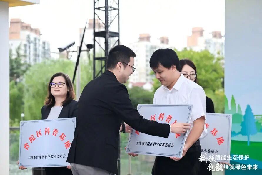 为鼓励企业以技术创新助力生态保护,构建 “科技 + 环保” 协同发展新格局。活动现场为今年普陀区新增的三家科普基地进行了授牌。