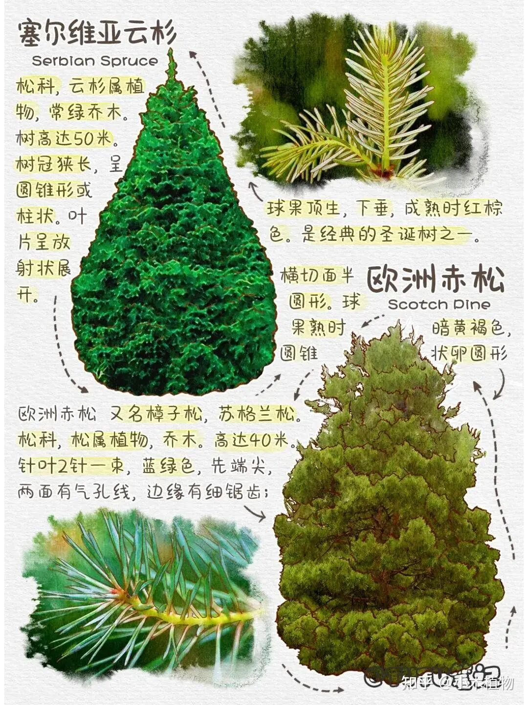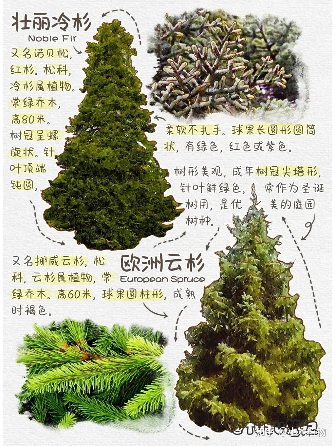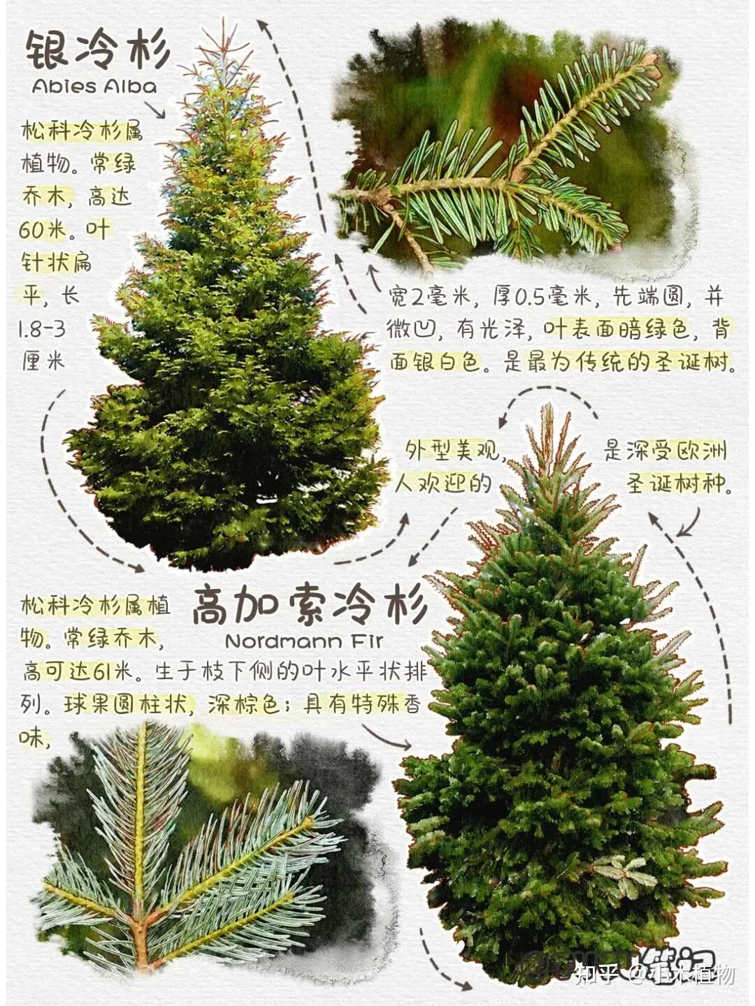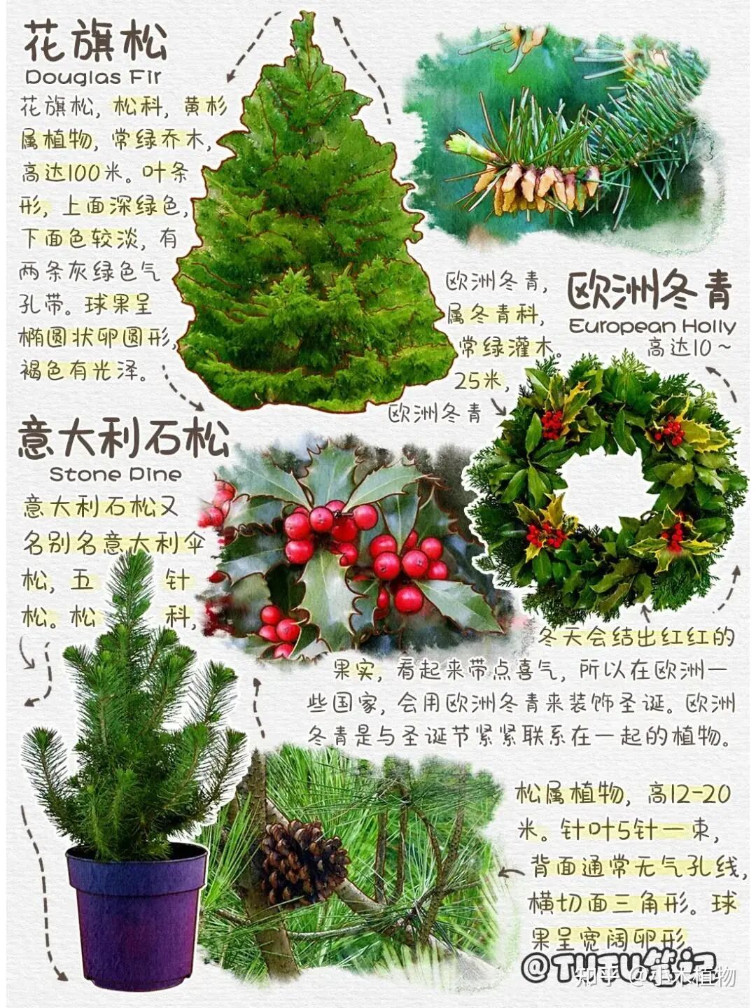 点击蓝字关注我们 Merry Christmas 圣诞快乐 Merry Christmas | Merry Christmas | Merry Christmas 圣诞树,是指用灯烛和装饰品把枞树或洋松装点起来的常青树,作为圣诞节重要的组成元素之一。它通常呈现三角形,是冬季依然能保持绿色的长青树木,干燥后不易凋落,而且价格合理,因此松柏是制作圣诞树的首选。人们会在圣诞前后把一棵常绿植物如松树弄进屋里或者在户外,并用圣诞灯和彩色的装饰物装饰,并把一个天使或星星放在树的顶上。 圣诞树的种类 圣诞树一般是用杉柏之类的常绿树做成,象征生命长存,其主要种类包括: 1. 冷杉:冷杉是一种常绿乔木,具有直立的树干和圆锥形的树冠,枝叶繁茂,树形美观,是圣诞树的传统选择之一。常见的用于制作圣诞树的冷杉有香脂冷杉、南香脂冷杉、欧洲冷杉(也叫银枞、白枞,被视为最为传统的圣诞树)、高加索冷杉、紫果冷杉等。 2. 云杉:云杉是另一种常绿树种,树形通常是狭圆锥形,适合作为圣诞树。云杉的耐寒性和耐阴性使其成为受欢迎的选择,常见的用于制作圣诞树的云杉有蓝云杉、白云杉、挪威云杉(由于易于种植、价格便宜,因此是十分常见的圣诞树树种)等。 图片来源于:TUTU笔记 3. 松类:包括赤松、白松、欧洲赤松、石松、花旗松、大冷杉、油松、黑松、挪威银杉(银杉是松科的常绿乔木,主干高大通直,挺拔秀丽,枝叶茂密)等松树种类,它们的树冠通常是圆锥形或塔形,生长迅速,也是制作圣诞树的常见材料。 银杉 4. 雪松:雪松是松科雪松属植物,常绿乔木,树冠尖塔形,大枝平展,小枝略下垂,如红雪松是大型针叶常绿植物。如果想要一棵独一无二的圣诞树,雪松是个不错的选择。不过,雪松原产于亚洲西部、喜马拉雅山西部和非洲、地中海沿岸等地,中国只有一种喜玛拉雅雪松,分布于西藏南部及印度和阿富汗,因此其作为圣诞树在中国并不常见。 5. 柏树:柏树是常绿乔木,具有直立或倾斜的树干和密集的枝叶,某些柏树种也被认为是圣诞树的理想选择。不过,柏树高耸挺拔,更多见于陵园等场合,较少用作圣诞树。 以上信息均整理自互联网,仅用于公益传播,如有侵权,请联系我们!